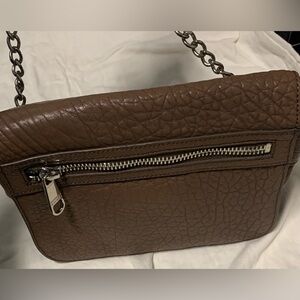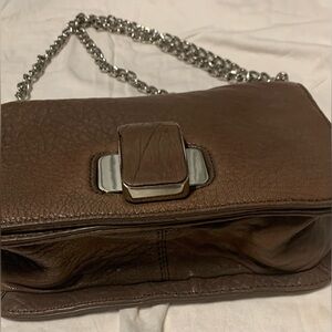 Vtg Designer Badgley Mischka Pebbled Leather Crossbody Chain Brown Handbag
