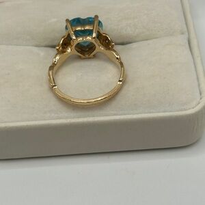 14k Solid Gold Ring Blue Heart 10mm Topaz and Diamond Gemstone