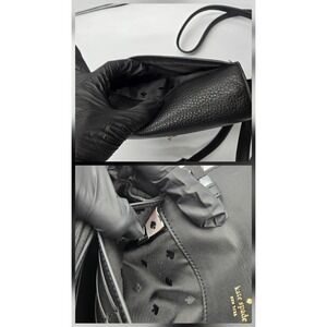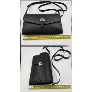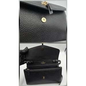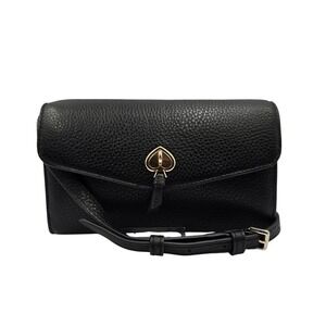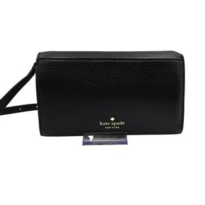 Kate Spade black pebbled leather crossbody bag with signature spade lock closure. Adjustable crossbody strap for comfortable wear. Interior features card slots and a zippered pocket for organization. Perfect for everyday use, evening outings, or travel.