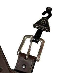 New Sheplers Men’s Leather Brown Belt Silver Hardware Size 34 BNWT. There is a little scratching on the metal from storing. Otherwise new condition. Smoke free home. Ships fast!