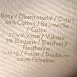 Dress: 66% cotton, 32% viscose, 2% elastane