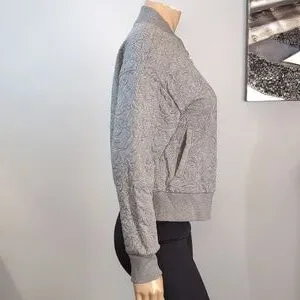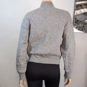 Gap Floral Quilted Cocoon Bomber Jacket Womens Medium Relaxed Grey Pima Cotton