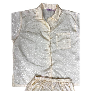 Cool Clothing Pajama Set Large Short Sleeve Shirt Pants Cream satin