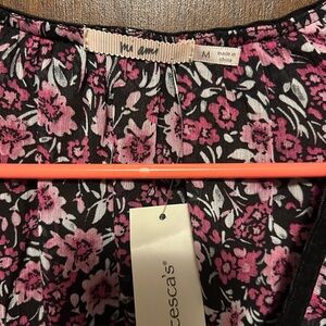 Beautiful Francesca’s floral blouse. Has black velvet trimming by the chest. New with tags! Size medium