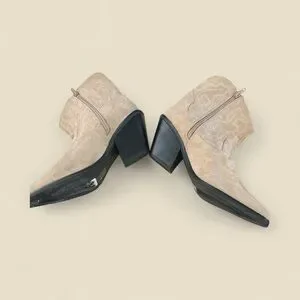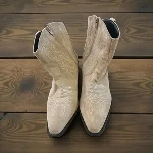 Gentle worn Stylish beige western boots with a sleek heel. Perfect for any occasion. 15