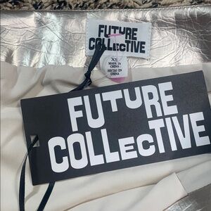 Future Collective Y2K 90’s Metallic Champagne Double Zip Mini Skirt Sz XS | NWT