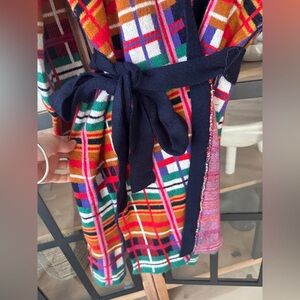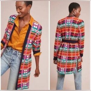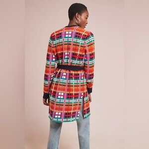 Anthropologie Moth Williston Plaid cardigan colorful knit tie waist coat sweater