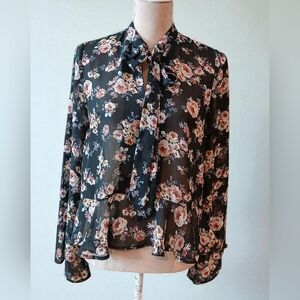 SOLD SOLD loral Romantic Sheer Mesh Womans Junior Blouse Tiered Small