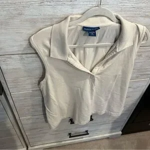 Karen Scott Beige Collared Sleeveless Polo Tank Top Size XL – Casual Knit Stretch