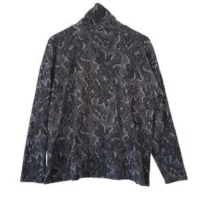 Simply Vera Vera Wang Gray Lace Print Turtleneck Long Sleeve Top XL Romantic