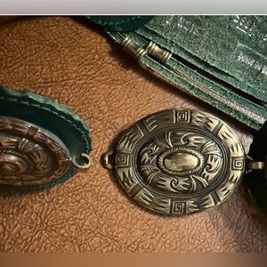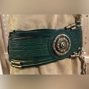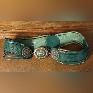 Vtg Western Tooled Green Leather Bead Belt Size M/L