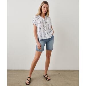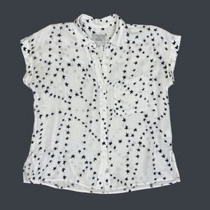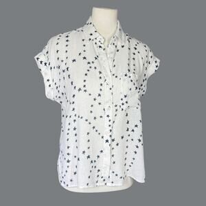 Rails Whitney short sleeve button down linen blend white navy star top XS