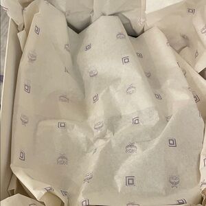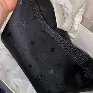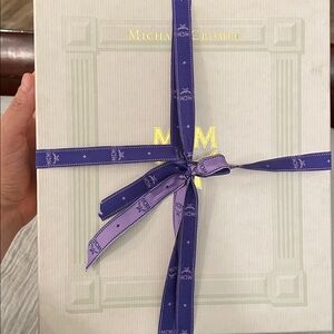 Stylish MCM box adorned with a vibrant purple ribbon. Ideal for gifting. Only call out a little tear on one side of the strap, overall great condition.