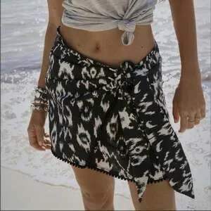 Zara Knoted Wrap Printed Black & White Mini Skirt New