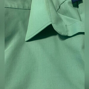 Stafford Performance's Men's 16 Green The Super Shirt is a wrinkle-free, button-up, classic fit, short sleeve shirt. It has a collar that stretches up to one inch, front placket, and collar stay crisp and neat after being put in the dryer.