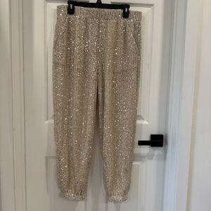 NWT Loft Sequin Pants Joggers Elastic Cuff Vertical Stripes
