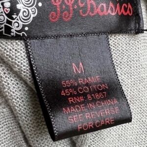 Made by the brand JJ Basics, this sweater features a one-button closure and a cropped style, perfect for layering over outfits. The light gray color adds a classic touch, while the cardigan style provides a chic and timeless look. This sweater is ideal for women looking for a comfortable and fashionable piece to add to their collection.