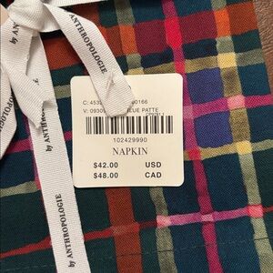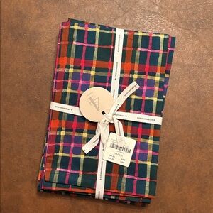 NWT Anthropologie Set of 4 Tartan Dinner Napkins
