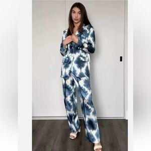 NWT Zara Tie-Dyed Print Wide High Rise Leg Pants Trousers S