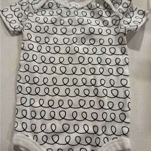 Adorable short sleeve onesies for babies featuring playful patterns. Available in versatile white, classic black, and elegant gold. Perfect for everyday comfort and style. Size 6-9 months.
