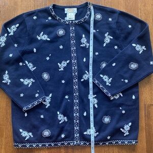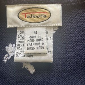 Talbots navy blue and white floral design women’s cardigan size medium