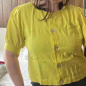 NWT Kensie 100% Linen Puff Sleeve Button Top XL