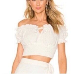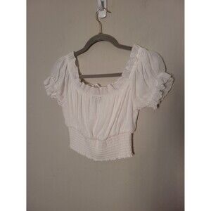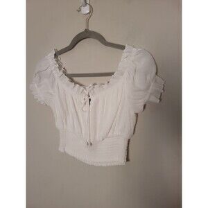 Majorelle White Cottagecore Smocked Crop Top Sz S