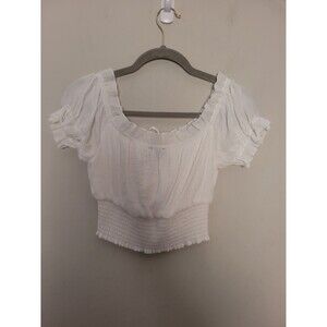 Majorelle White Cottagecore Smocked Crop Top Sz S Milkmaid Coquette Breathable