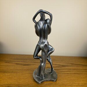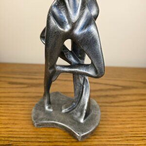 This elegant abstract statuette depicts a couple in a close, expressive embrace, rendered in a flowing modernist style. The elongated forms and intertwined arms create a strong sense of movement, intimacy, and balance, making this piece both sculptural and emotional in presence.
