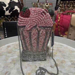 NWT Viral Marshall’s strawberry shake w/straw beaded handbag so unique!
