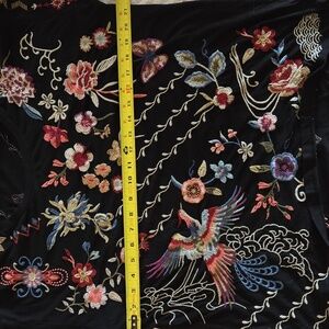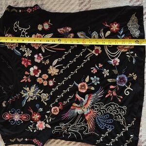 Johnny Was Black Top with Multicolor Floral Embroidery