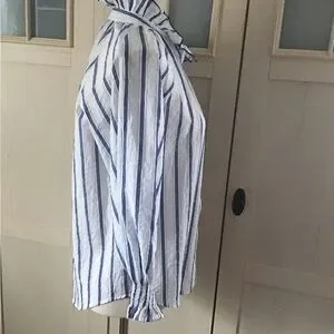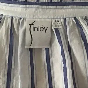 Finley Fiona High Neck Ruffle Blouse Blue/White Striped Size XS 100% Cotton