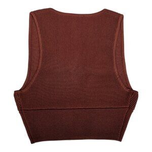 Babaton Sculpt Knit Brown Rust Deep V Neck Sleeveless Cropped Tank Top Size XS
