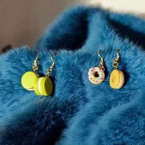 Two pair of fun handmade earrings. Mini Macroon cookies and Sprinkle donuts.