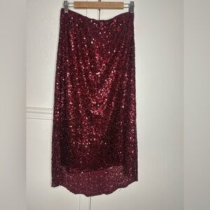 C wonder by Christian Siriano Burgundy High-Low Sequin Skirt size s