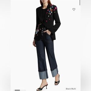 Cinq à Sept's Paillette Vines Cheyenne blazer features colorful paillettes and flared sleeves with slit cuffs.