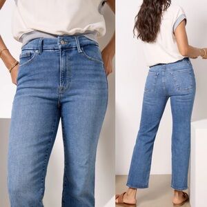 Top off your denim collection with these straight-leg jeans by Good American featuring a flattering high-rise fit, raw hems, and versatile blue wash. The one-size-fits-all design guarantees the perfect fit every time, while the soft stretch denim will move with you without losing its shape.