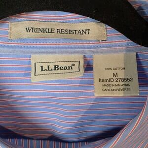 Effortlessly transition from desk to dinner in this classic LL Bean button-down shirt. The crisp blue and pink stripe pattern offers a touch of refined style, while the wrinkle-resistant fabric ensures you look polished all day long. This versatile shirt features a comfortable fit and is perfect for business casual settings, weekend outings, or layering for a chic ensemble.