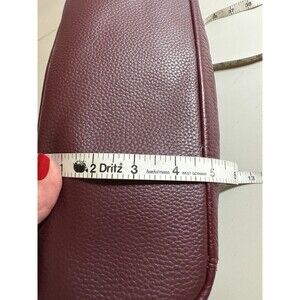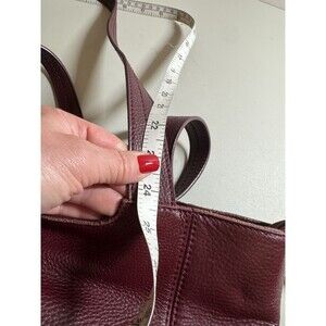 The Sak De Young Tote Bag in Burgundy/Red Pebbled Leather is a stylish and versatile handbag perfect for travel, casual outings, or business meetings. Made from high-quality leather with an embossed logo, this medium-sized tote features a rectangular shape with double red handles for easy carrying. The zip closure and lined interior with inner pockets and a mobile phone pocket offer both functionality and organization. This vintage-inspired designer piece adds a touch of classic charm to any outfit, making it a must-have accessory for any fashion-forward woman. Bag is in excellent preowned condition and shows minimal to no signs of wear in exterior. Interior is clean with a small dot (stain) as seen in photos. Measurements in photos. I appreciate your business and strive for a five star rating. Please feel free to message with questions.
