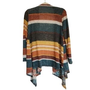 White Birch Striped Multicolor Open Front Lightweight Cardigan Size M Longline