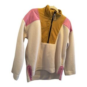 Free Assembly Women’s Half-Zip Mixy Popover Fleece Jacket/Shacket – White, Pink & Yellow – Medium