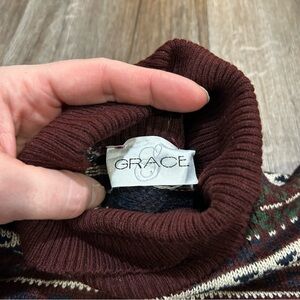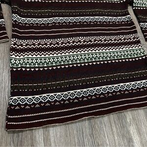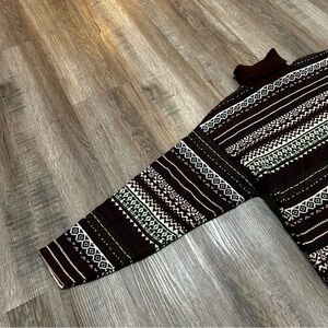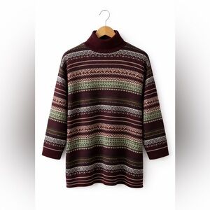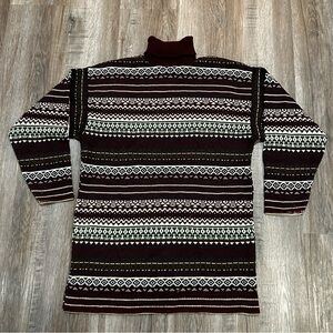 Vintage Fair Isle Turtleneck Sweater | Burgundy & Green Nordic Knit |