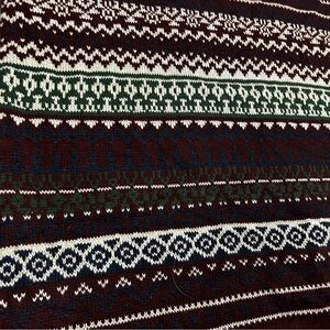 Vintage Fair Isle Turtleneck Sweater | Burgundy & Green Nordic Knit | Cozy Winter Pullover