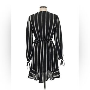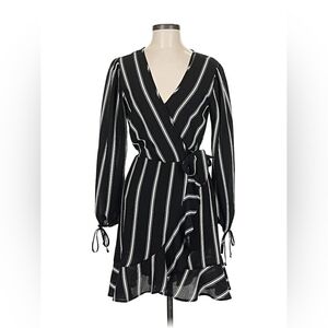 Band of Gypsies Women's Medium Black Pinstripe Faux Wrap Dress