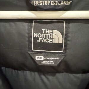 The North Face women’s HyVent insulated parka in black, size Medium. Warm and waterproof winter coat with a cozy quilted interior and attached hood. HyVent outer shell keeps out wind, snow, and rain while the down/feather insulation provides excellent warmth without heavy bulk. Zipper front with snap storm flap and multiple pockets.