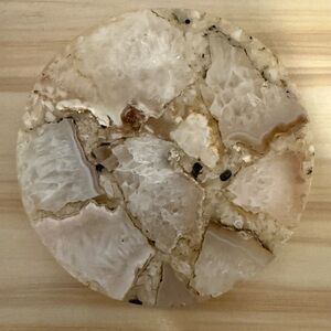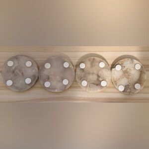 Enhance your home decor with these elegant white marble coasters. Each has its own unique design, cut from marble, all to mesh perfectly as a uniform set of 4.