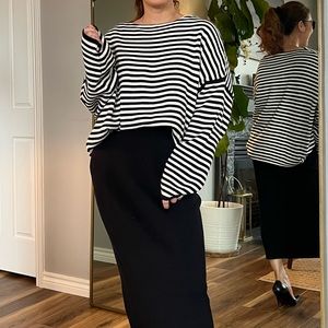 black and white striped oversized sweater. gently worn, in excellent condition. the Wesley sweater is a "one size" fits like an XL