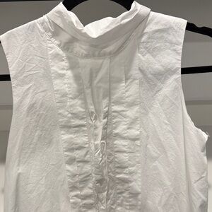 Beautiful sleeveless dress with ruffle detail. Ideal for casual outings. 100% cotton.