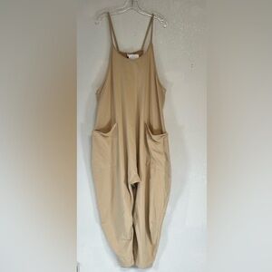 LULAROE Bridget Lounge Jumpsuit XL Beige Slouchy Drop Crotch Harem Pants Pockets