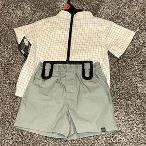 5/$15 Kids' White and Green Checkered Button-Down Shirt
